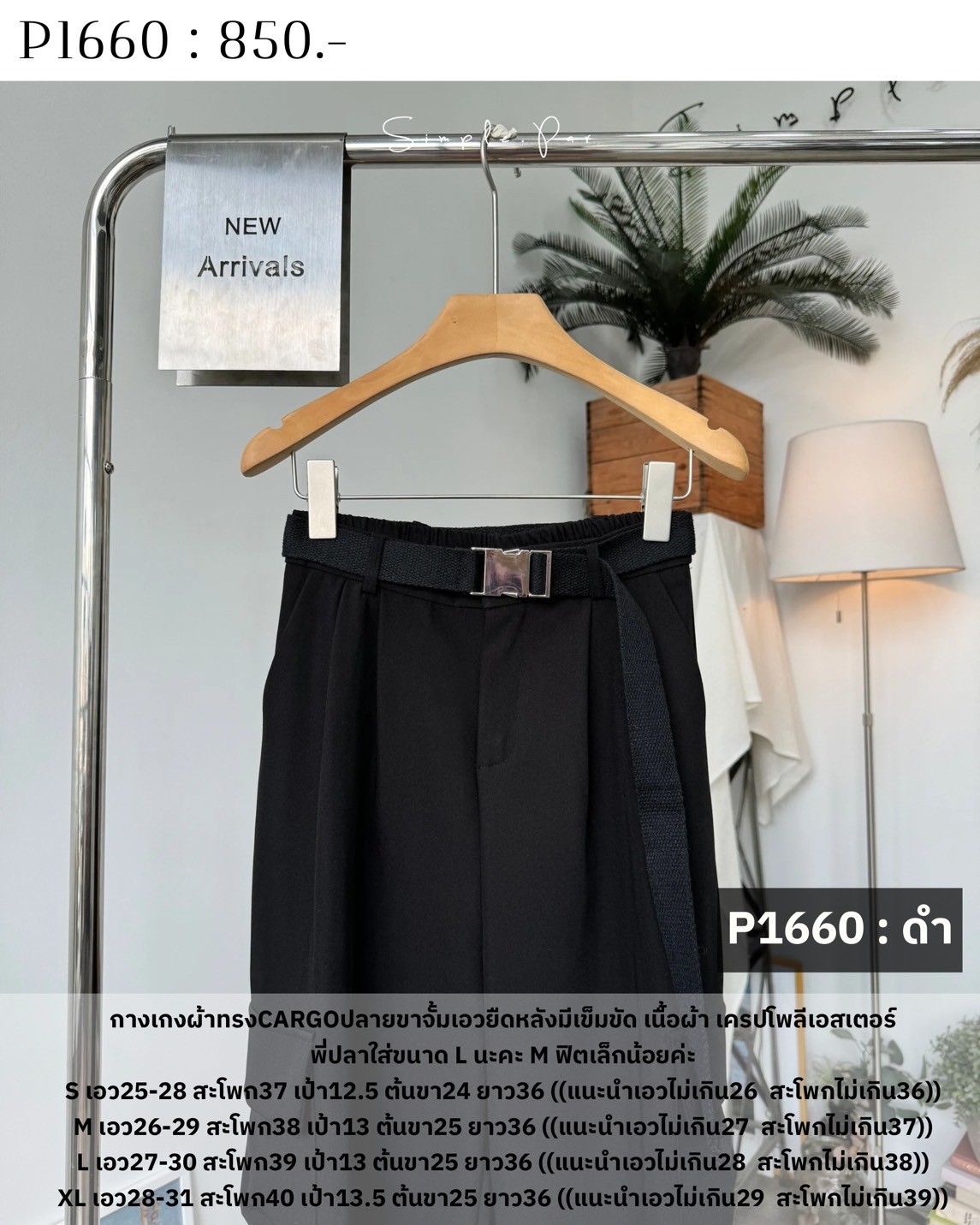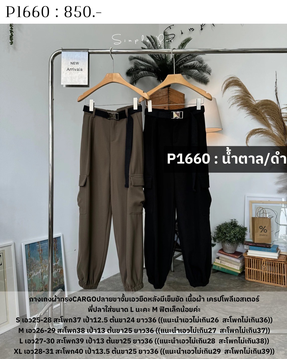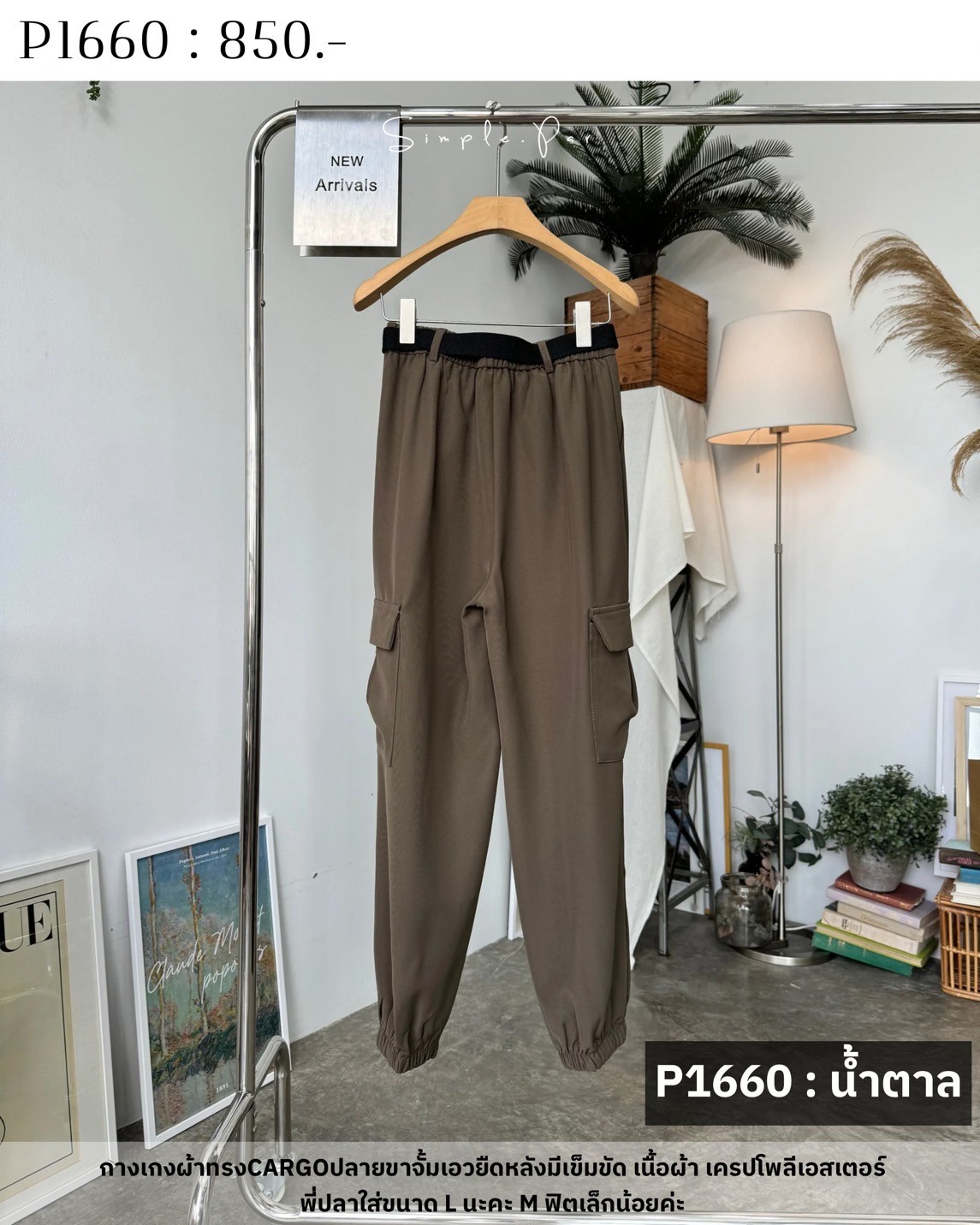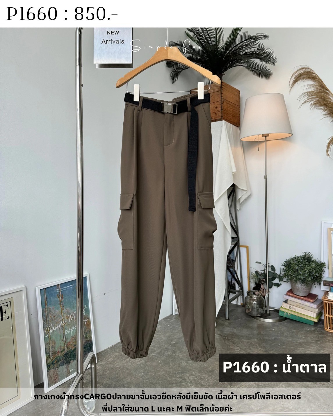 กางเกงผ้าทรงCARGOปลายขาจั้มเอวยืดหลังมีเข็มขัด เนื้อผ้า เครปโพลีเอสเตอร์พี่ปลาใส่ขนาด L นะคะ M ฟิตเล็กน้อยค่ะ