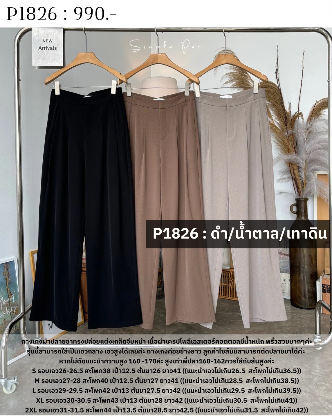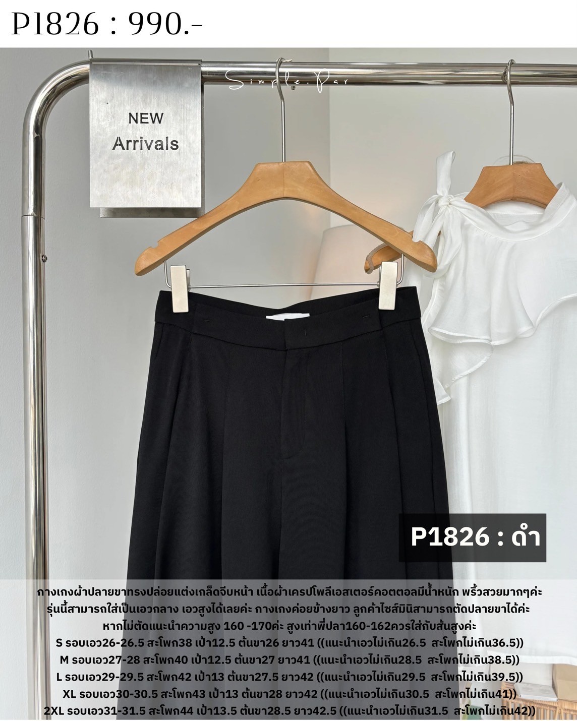S รอบเอว26-26.5 สะโพก38 เป้า12.5 ต้นขา26 ยาว41 ((แนะนำเอวไม่เกิน26.5 สะโพกไม่เกิน36.5))