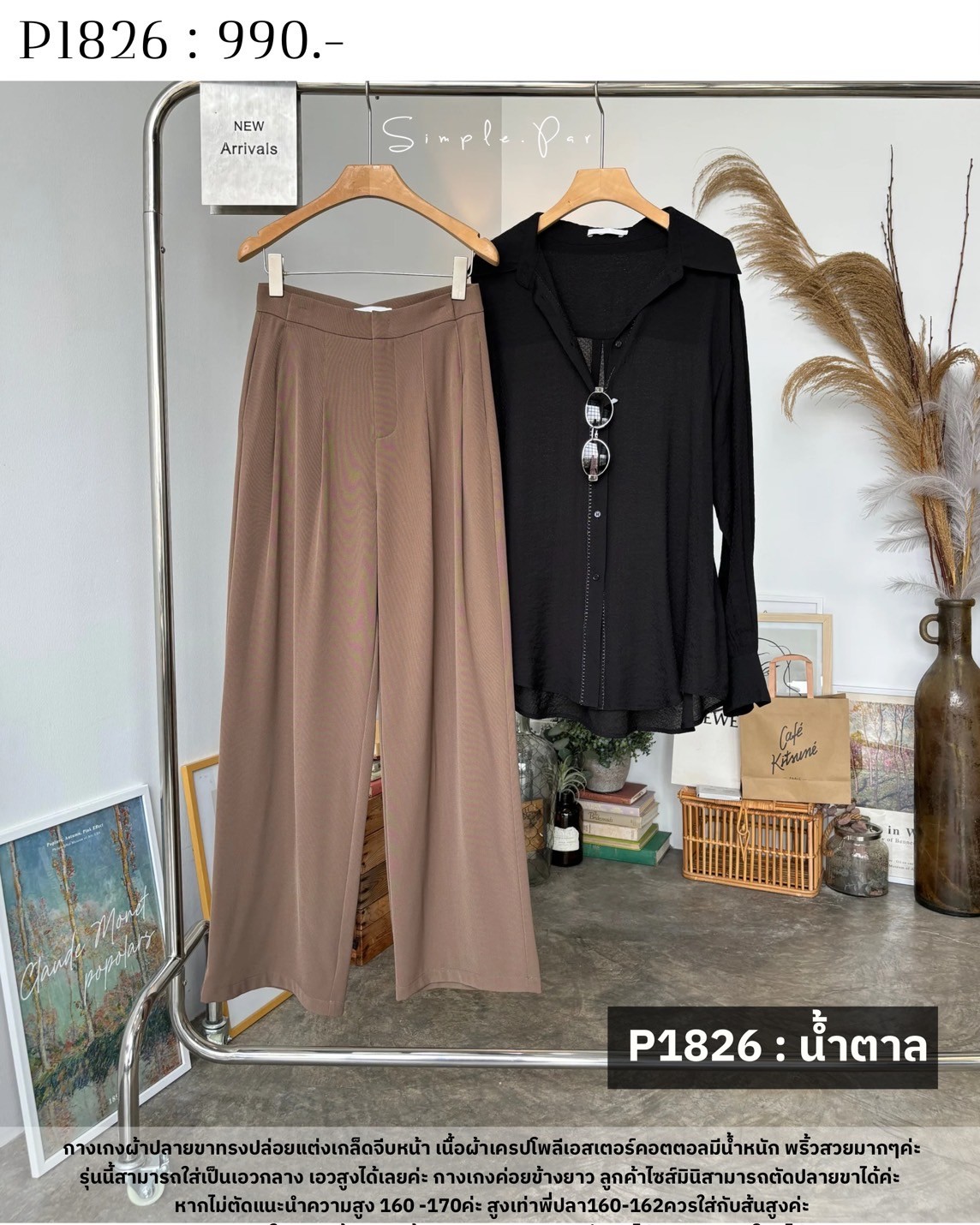 กางเกงผ้าปลายขาทรงปล่อยแต่งเกล็ดจีบหน้า เนื้อผ้าเครปโพลีเอสเตอร์คอตตอลมีน้ำหนัก พริ้วสวยมากๆค่ะ รุ่นนี้สามารถใส่เป็นเอวกลาง เอวสูงได้เลยค่ะ กางเกงค่อยข้างยาว ลูกค้าไซส์มินิสามารถตัดปลายขาได้ค่ะหากไม่ตัดแนะนำความสูง 160 -170ค่ะ สูงเท่าพี่ปลา160-162ควรใส่กับส้นสูงค่ะ