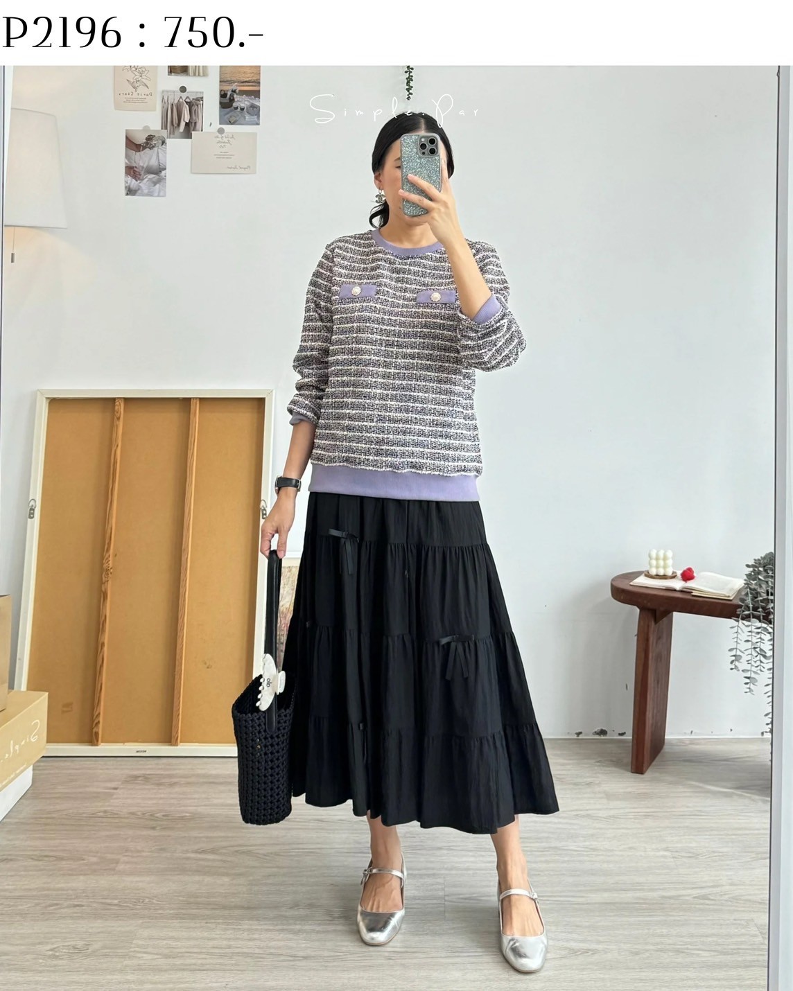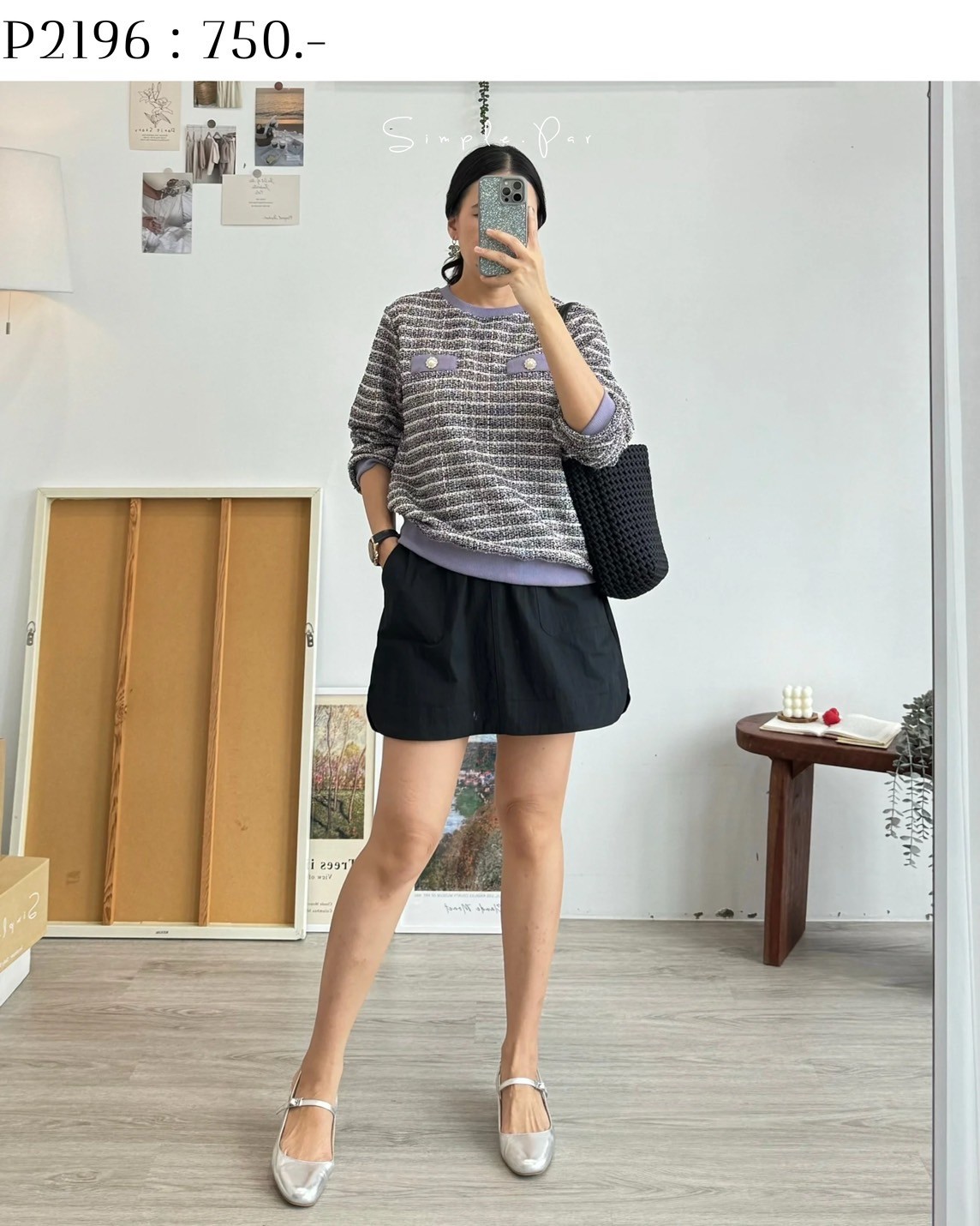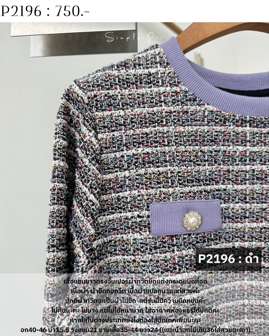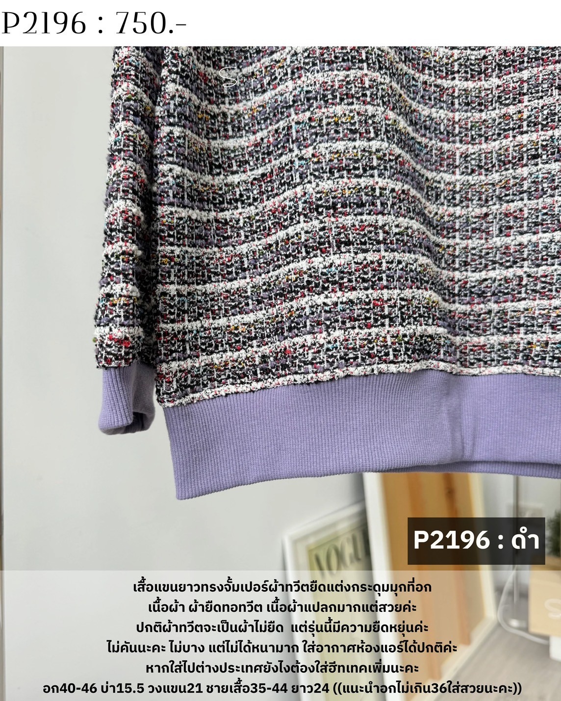 P2196 : เสื้อแขนยาวทรงจั้มเปอร์ผ้าทวีตยืดแต่งกระดุมมึกที่อก