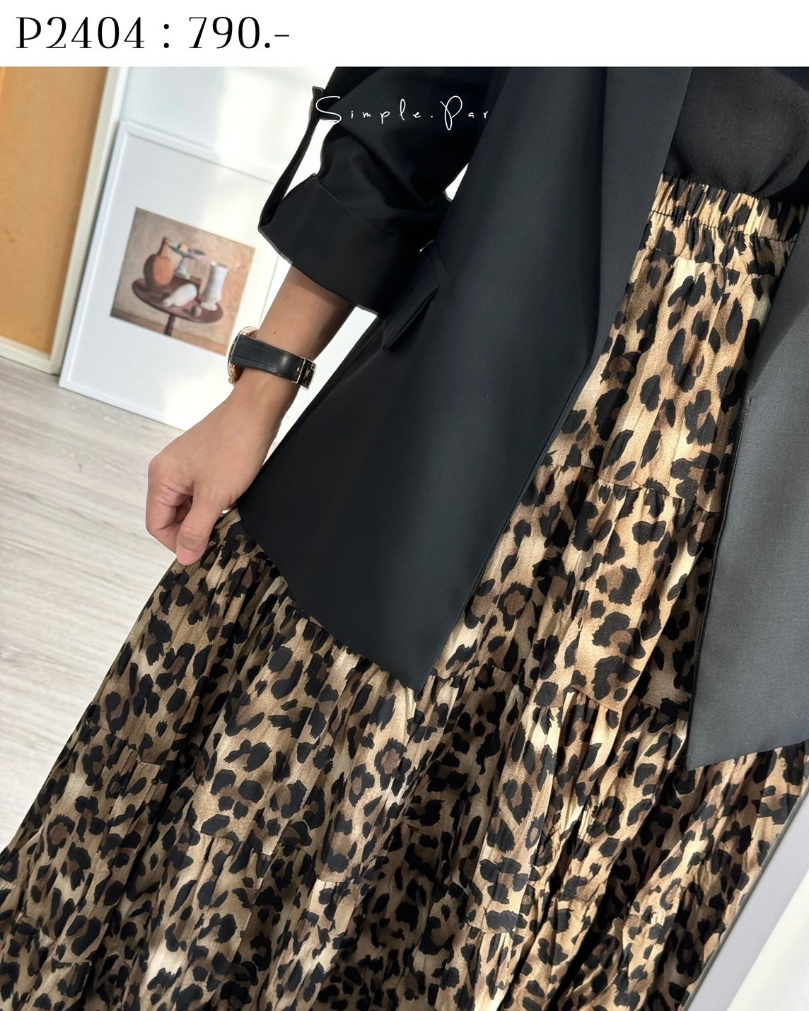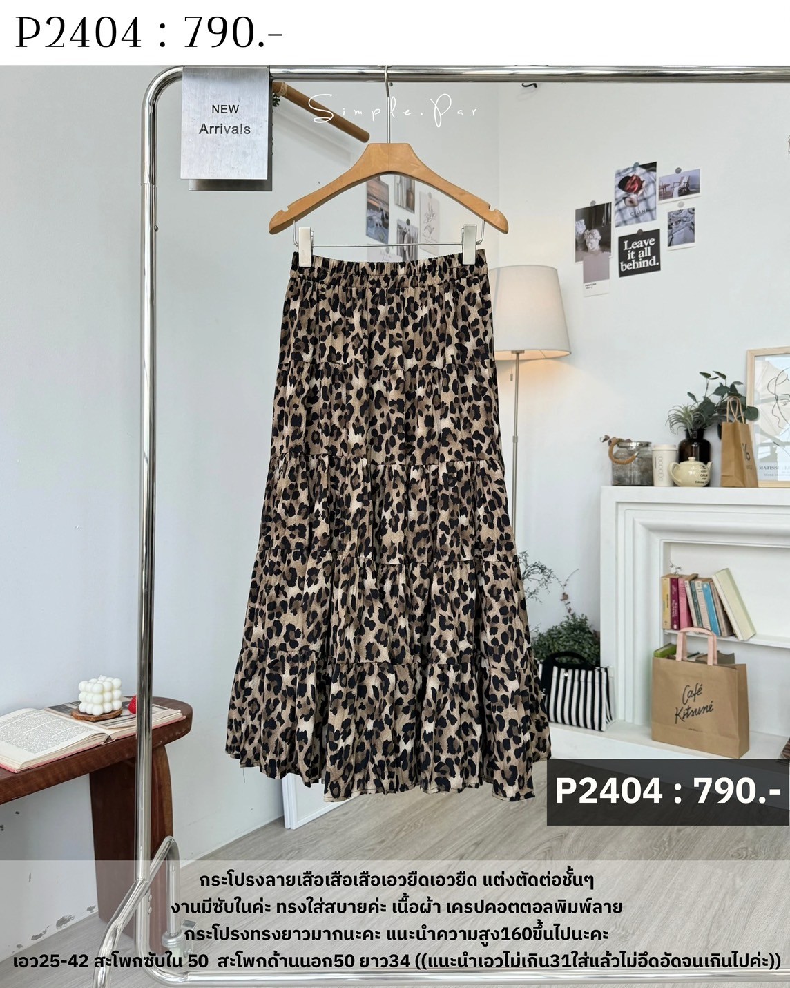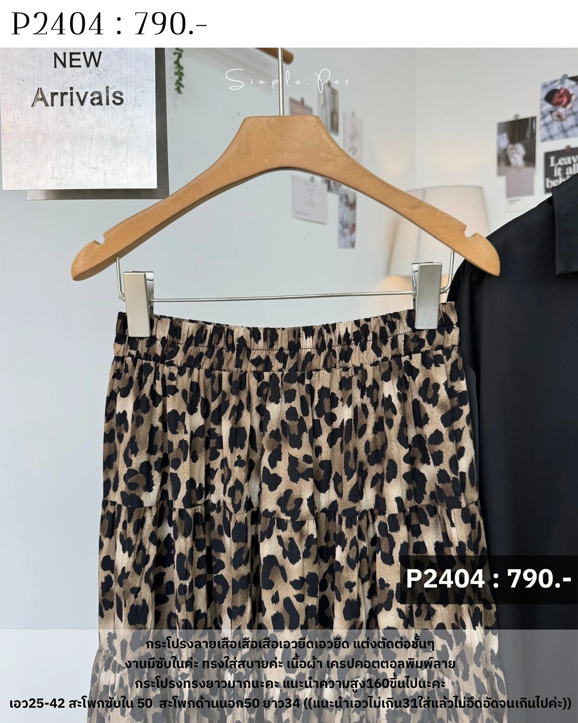 P2404 : กระโปรงลายเสือเอวยืด แต่งตัดต่อชั้นๆ
