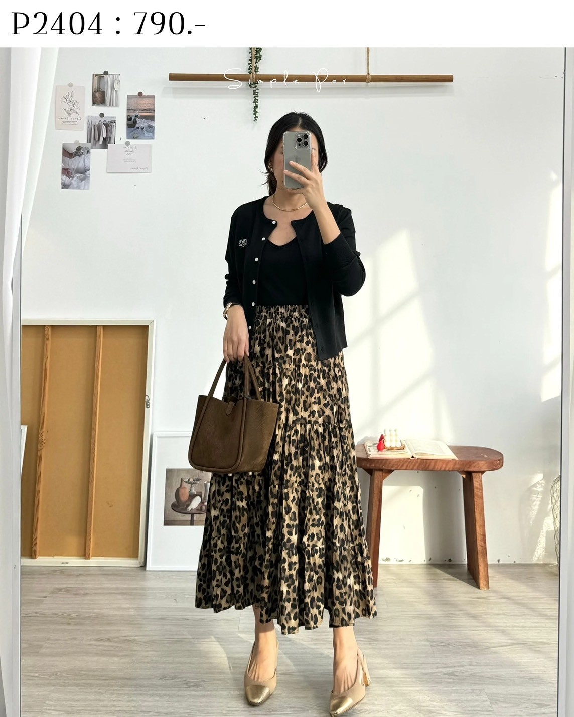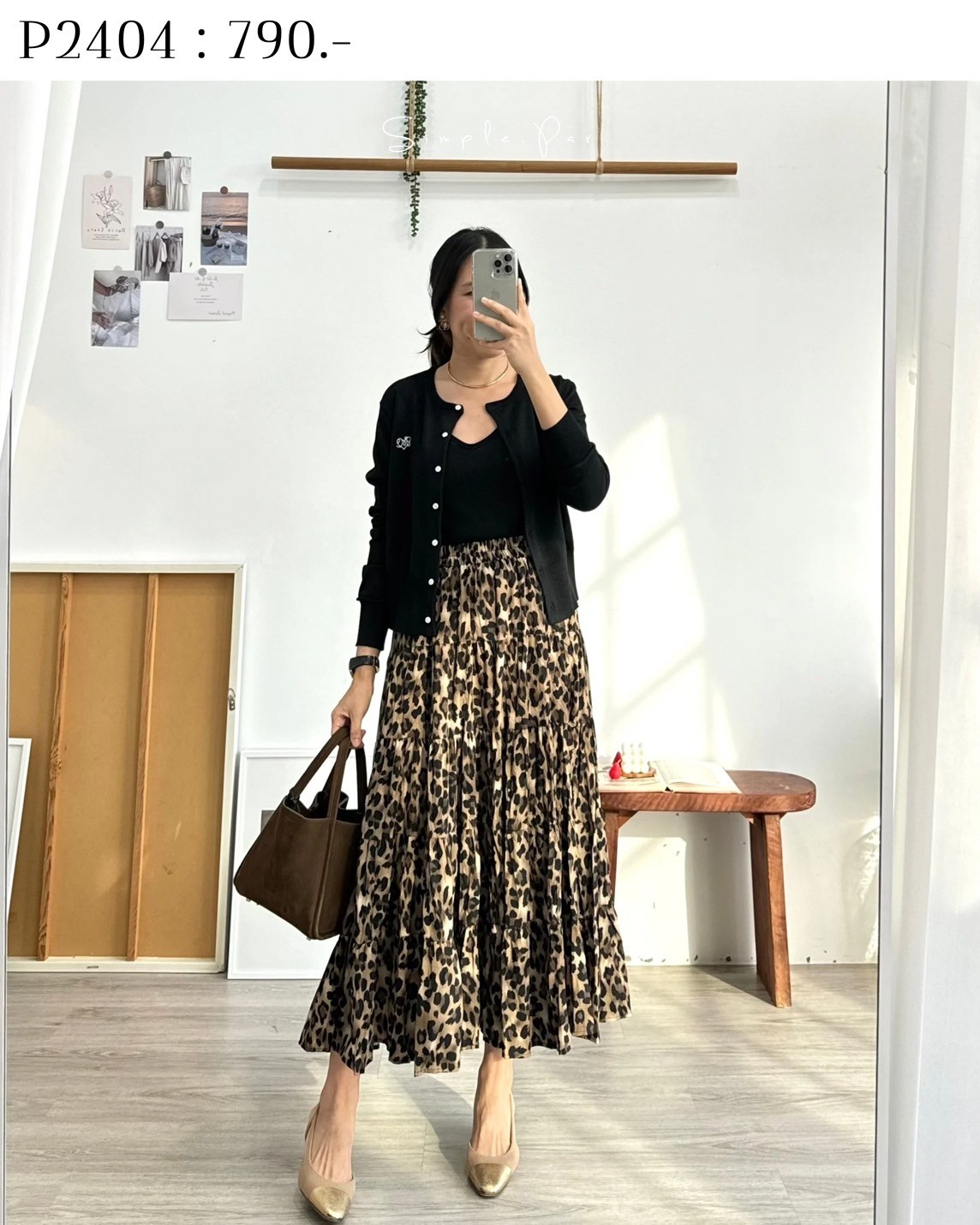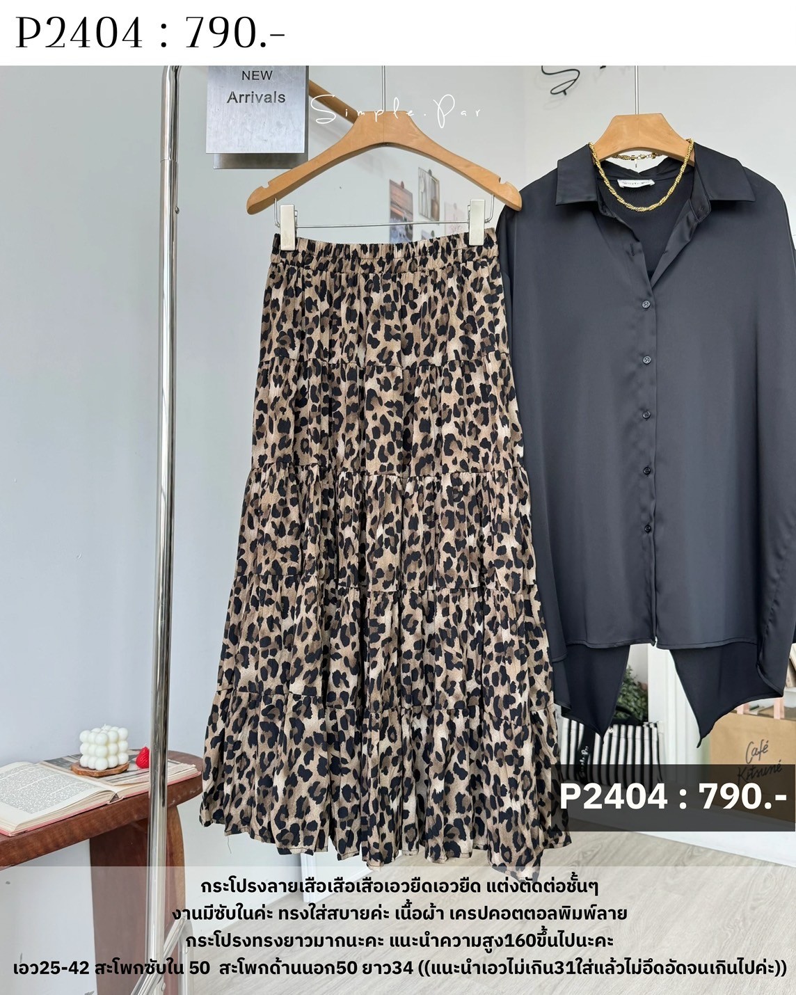 P2404 : กระโปรงลายเสือเอวยืด แต่งตัดต่อชั้นๆ