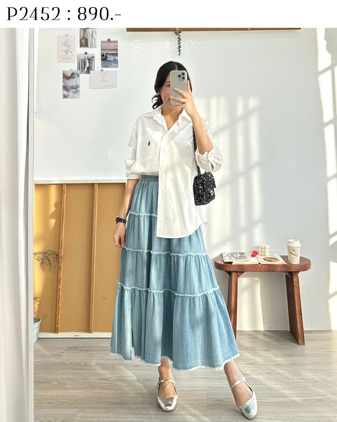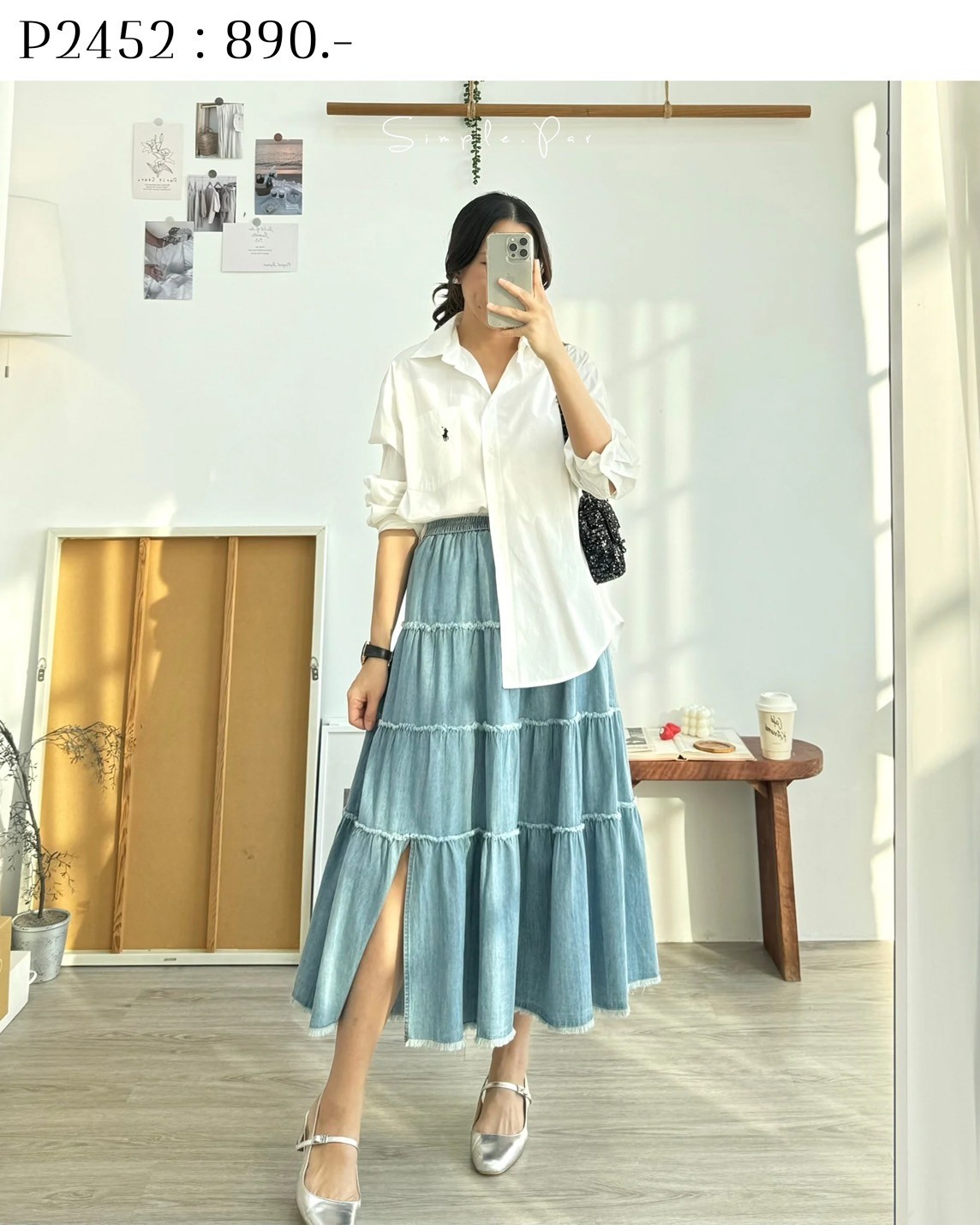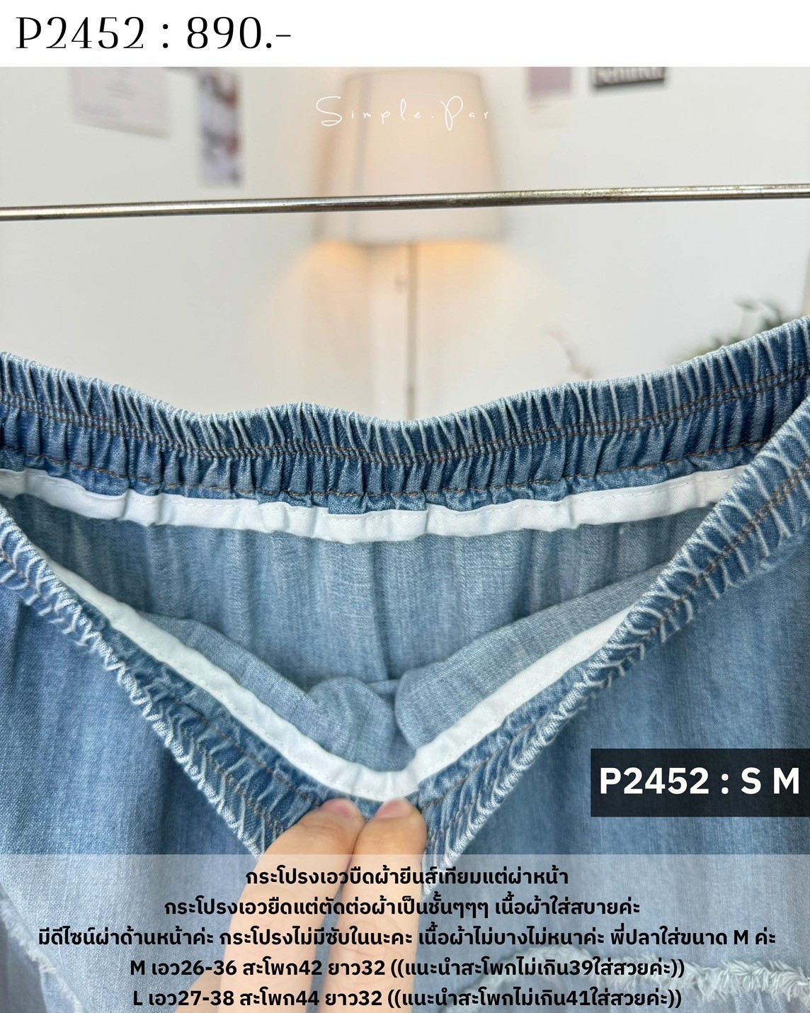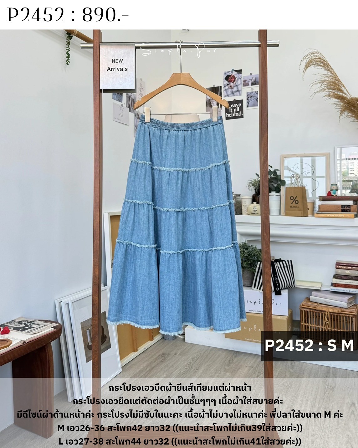 Be the first to review “P2452 : กระโปรงเอวบิดผ้ายีนส์เทียมแต่งผ่าหน้า”