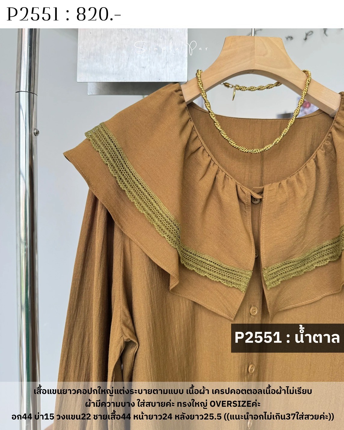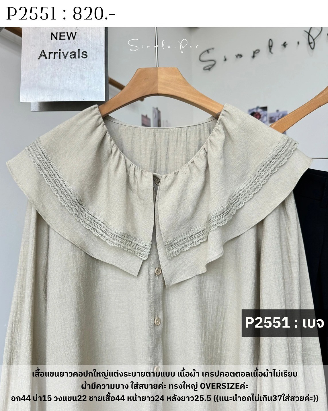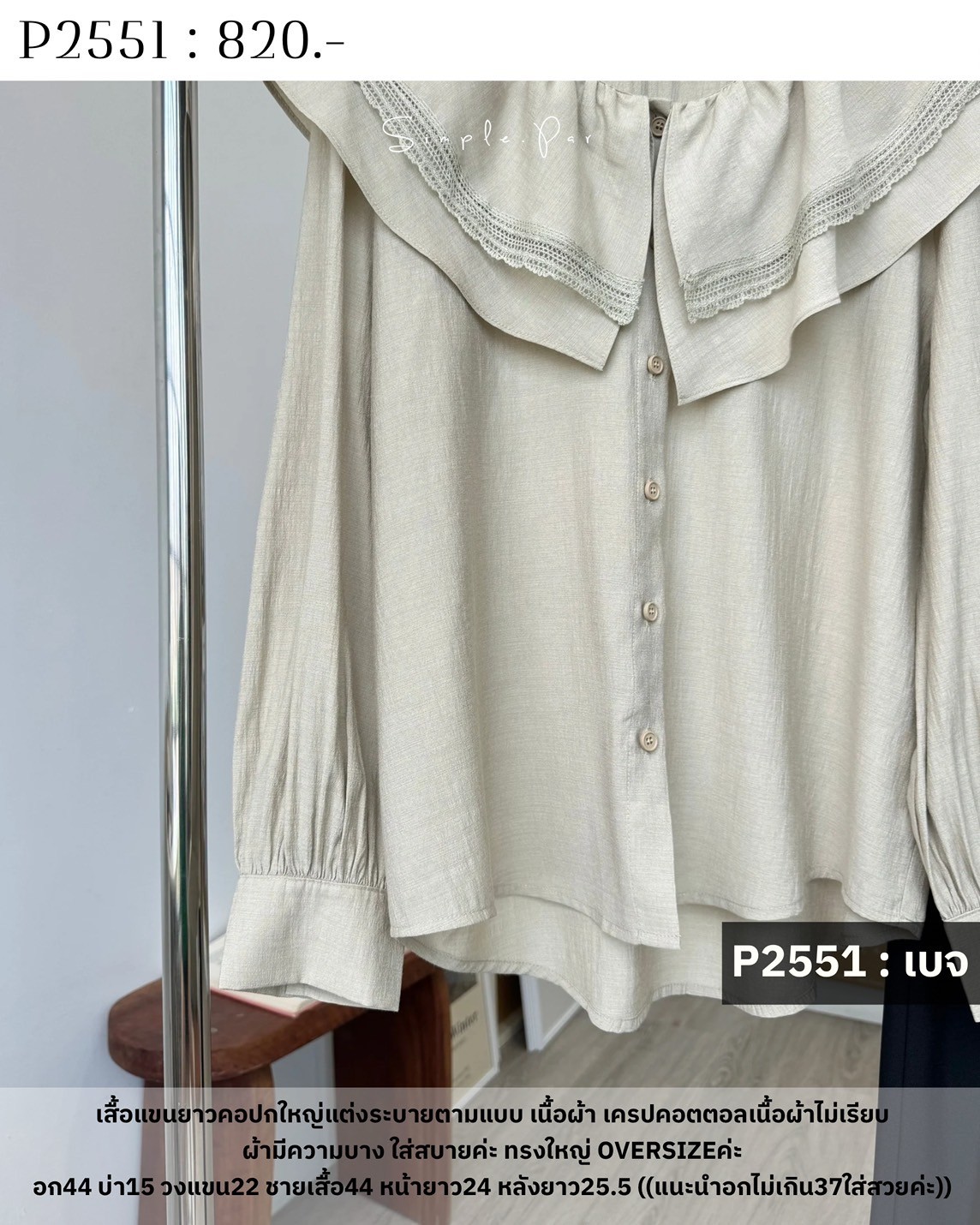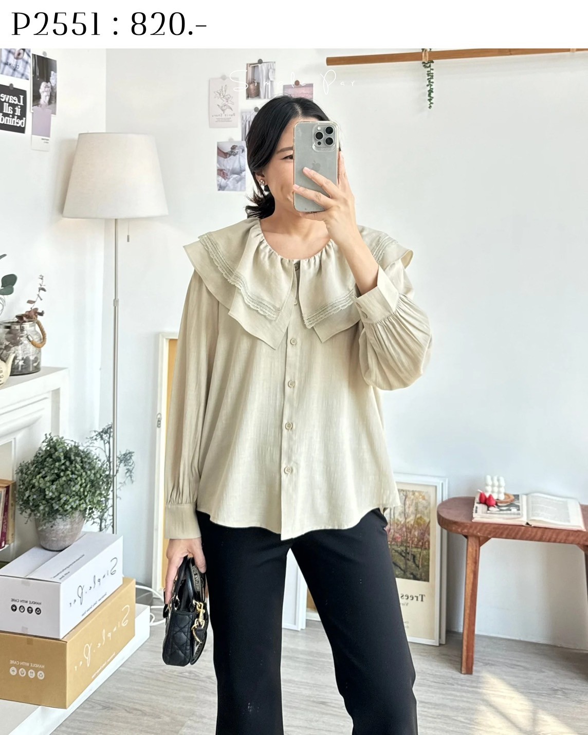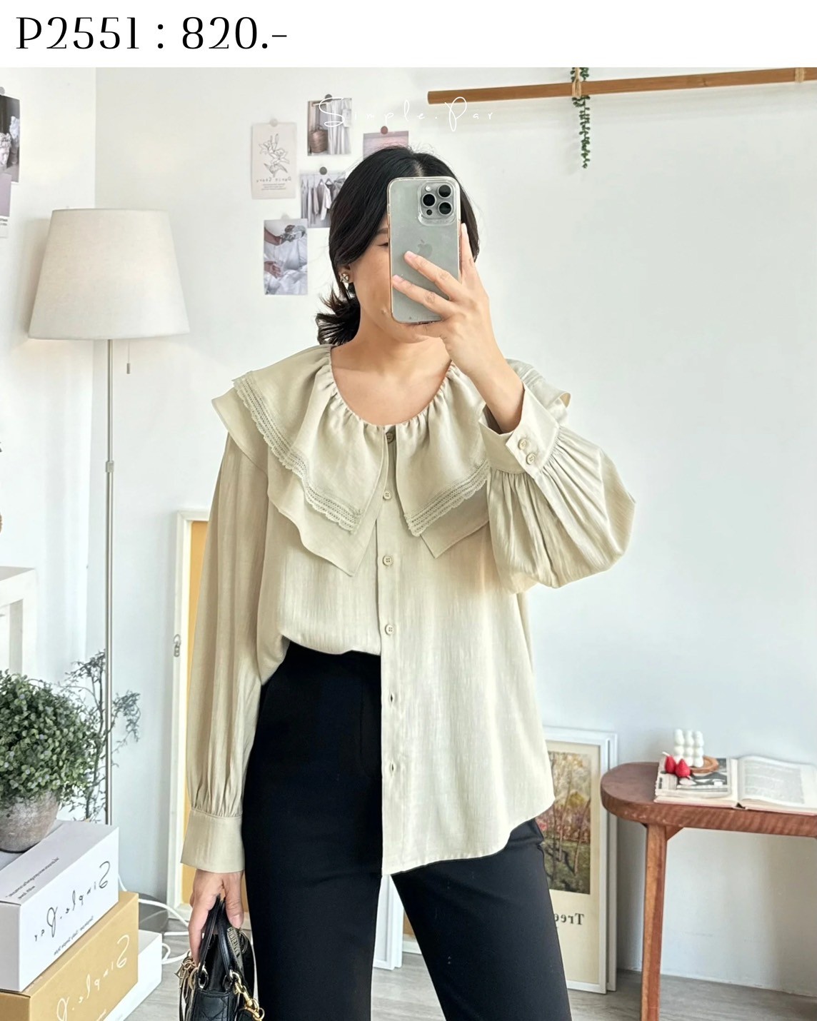 P2551 : เสื้อแขนยาวคอปกใหญ่แต่งระบายตามแบบ