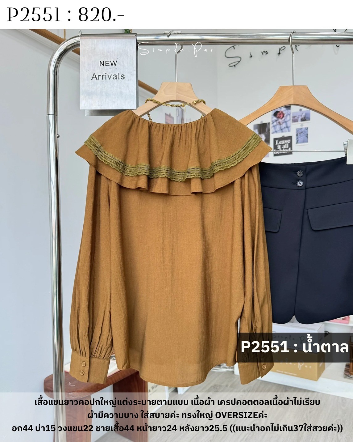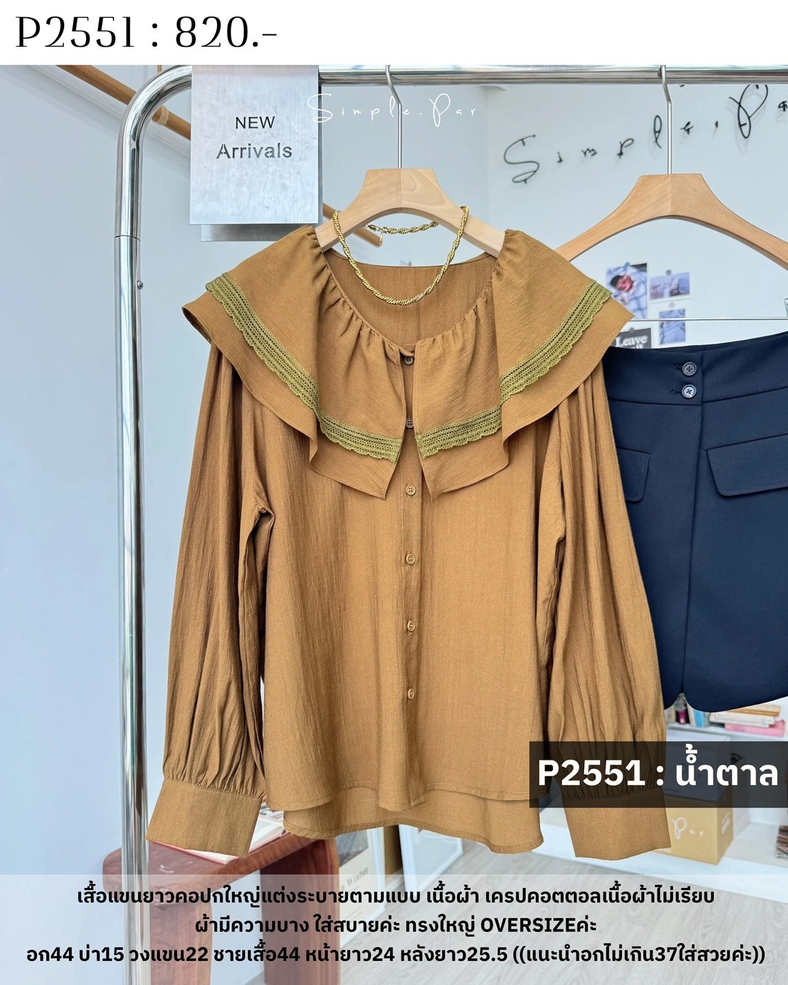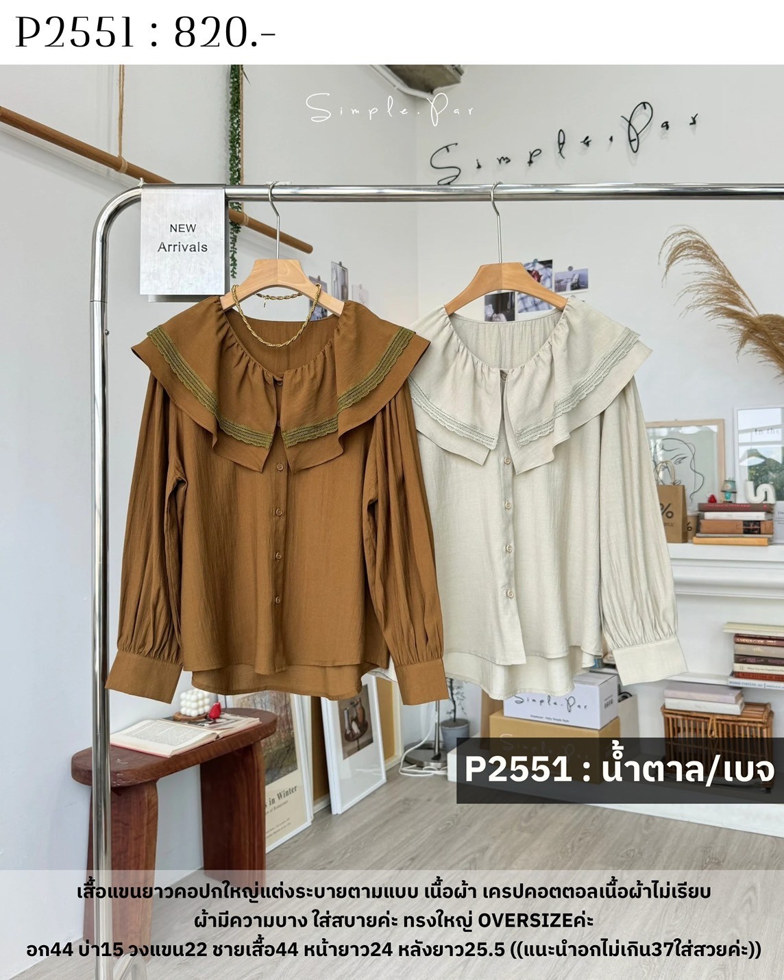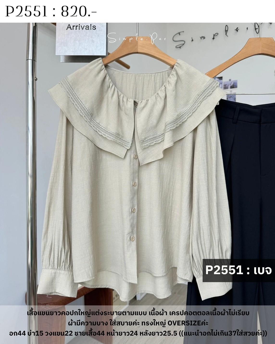 P2551 : เสื้อแขนยาวคอปกใหญ่แต่งระบายตามแบบ