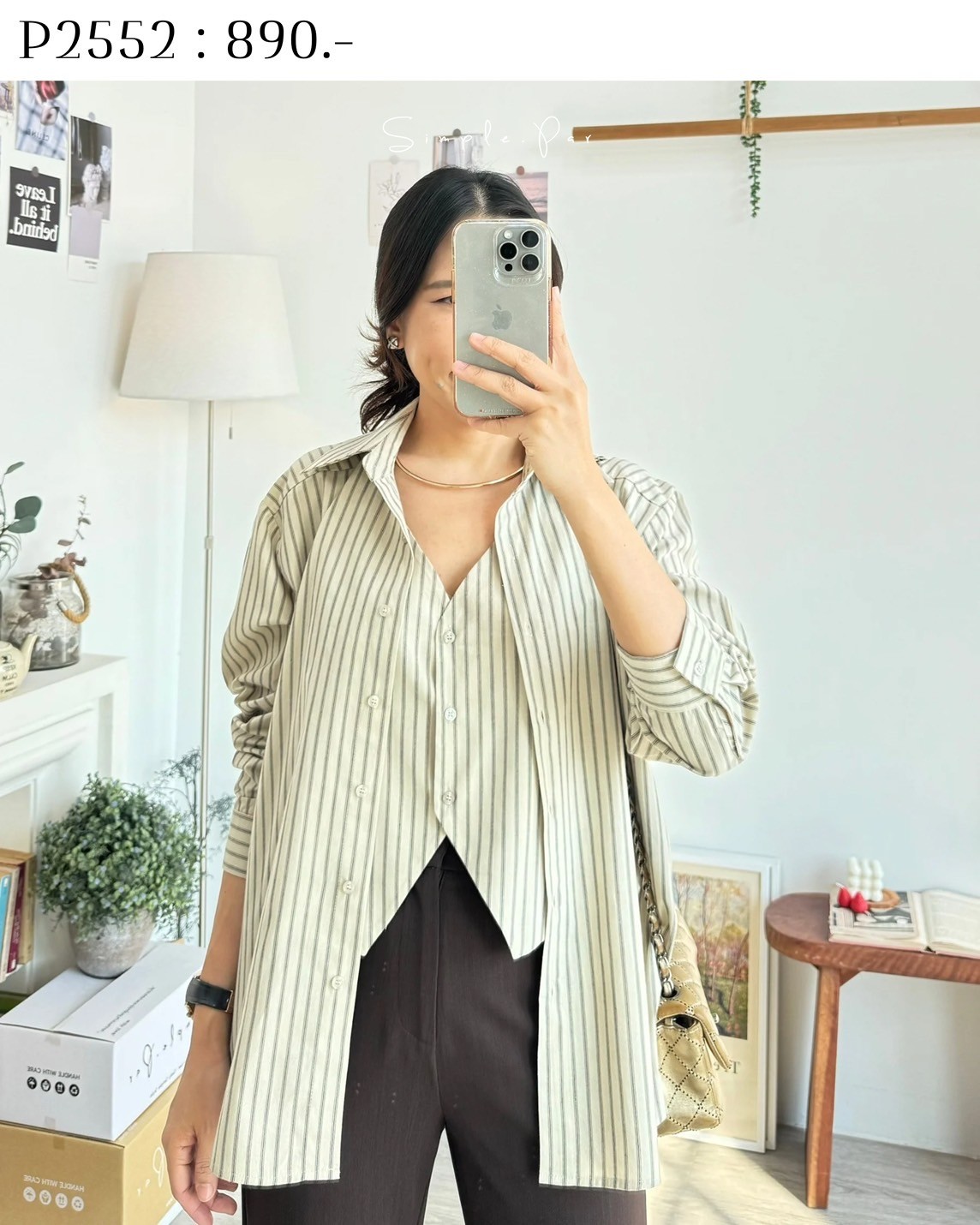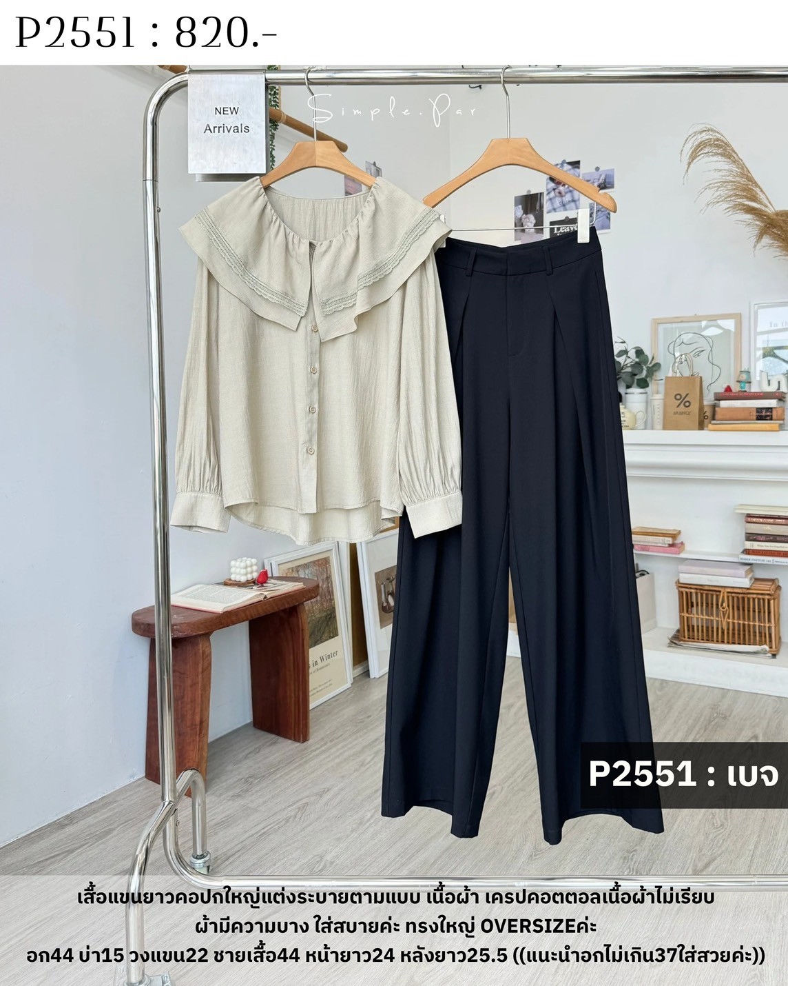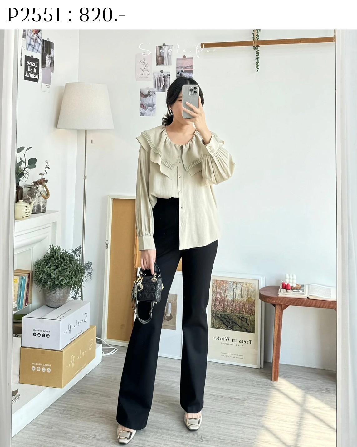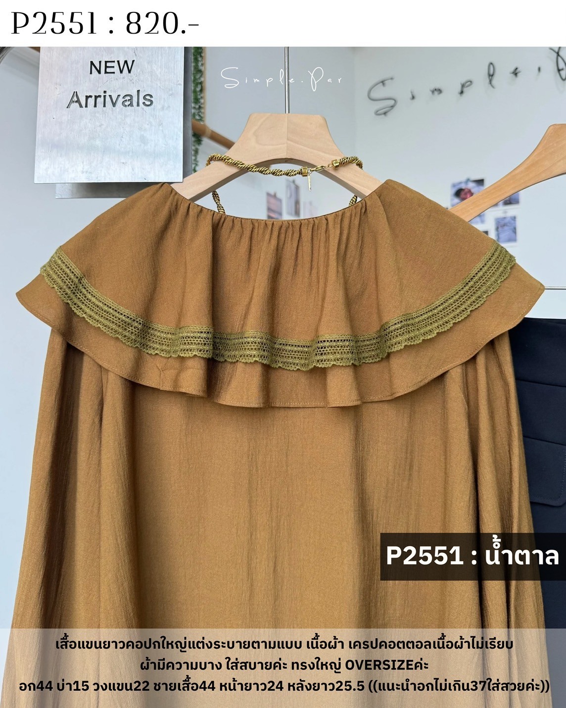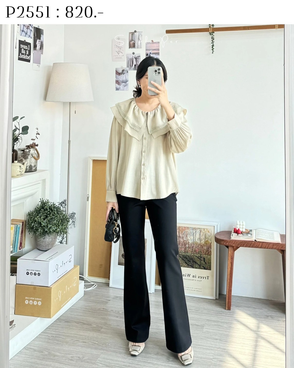 P2551 : เสื้อแขนยาวคอปกใหญ่แต่งระบายตามแบบ