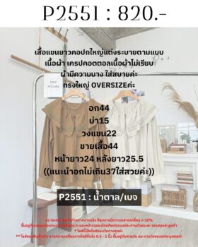 Be the first to review “P2551 : เสื้อแขนยาวคอปกใหญ่แต่งระบายตามแบบ”